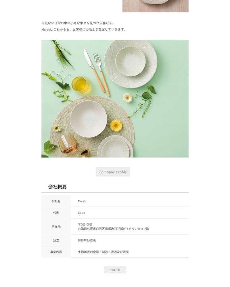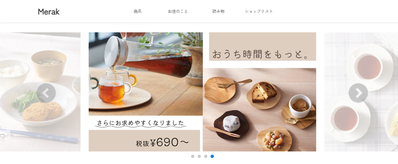 シンプルで扱いやすい食器類を主力商品と設定し、明るいキッチンの窓辺をイメージして白を基調にしています。また、使用バナーの多くはillustratorを使用して加工・文字入れを行いました。